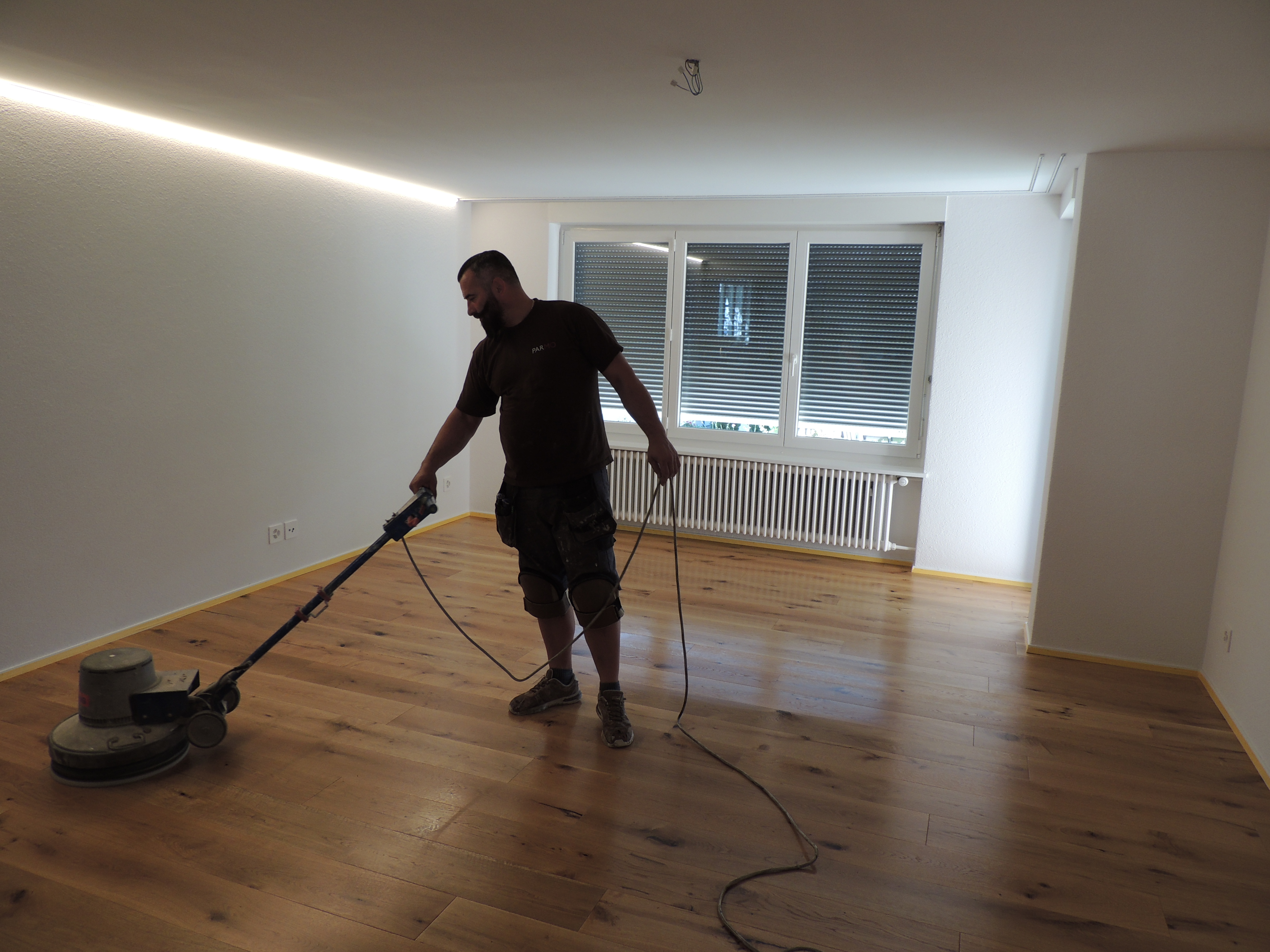 Vor der Vinylverlegung wurde der bestehende Unterlagsboden geschliffen, um Unebenheiten zu entfernen und eine optimale Haftung des neuen Belags zu gewährleisten. Das Ergebnis ist ein durchgängiges, funktionales und ästhetisch ansprechendes Bodenkonzept, das sowohl technische als auch gestalterische Anforderungen erfüllt.